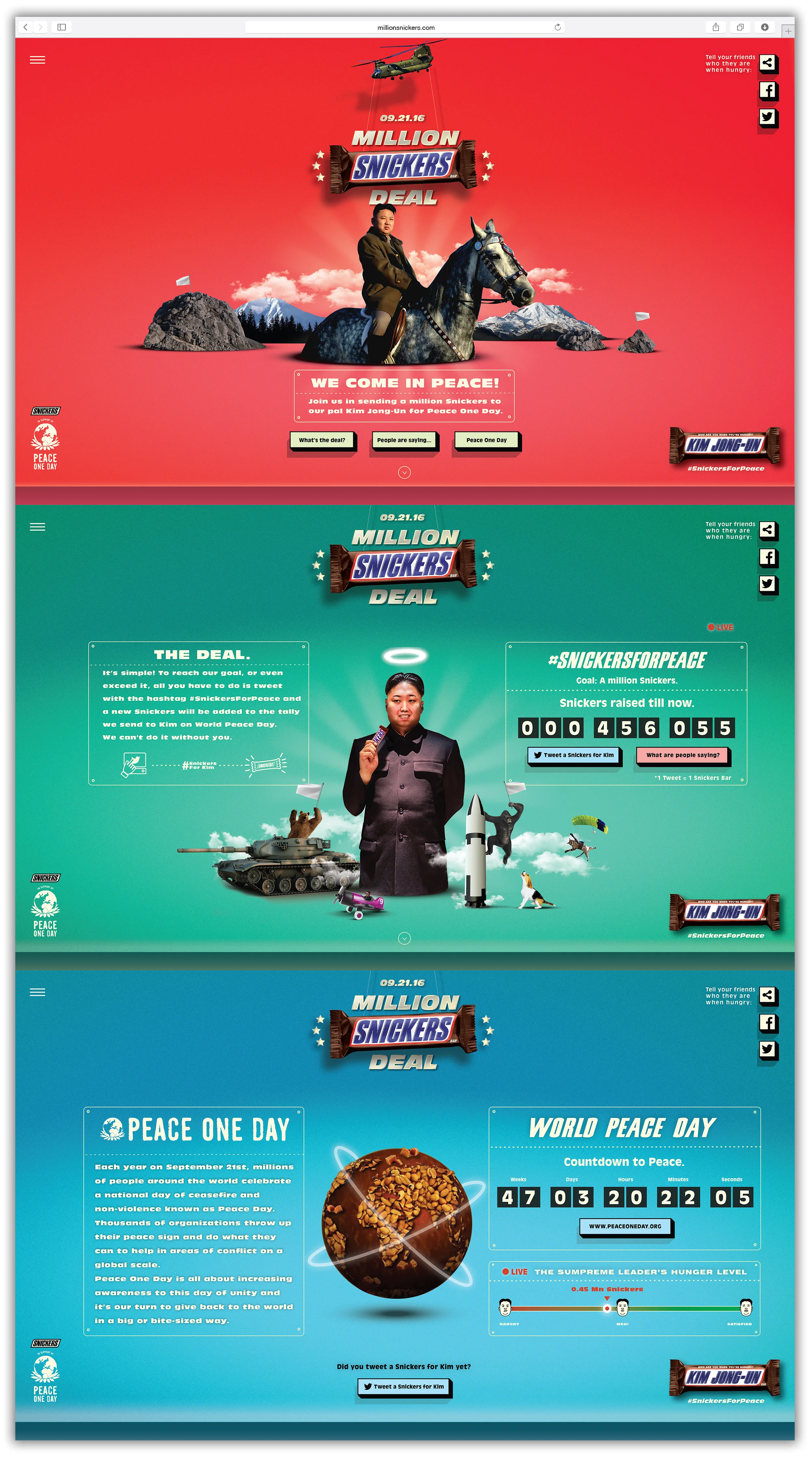 Snickers hopes to raise over a million bars with the help of people all over the world and send them right to Kim Jong-Un's doorstep on the International Day of Peace.